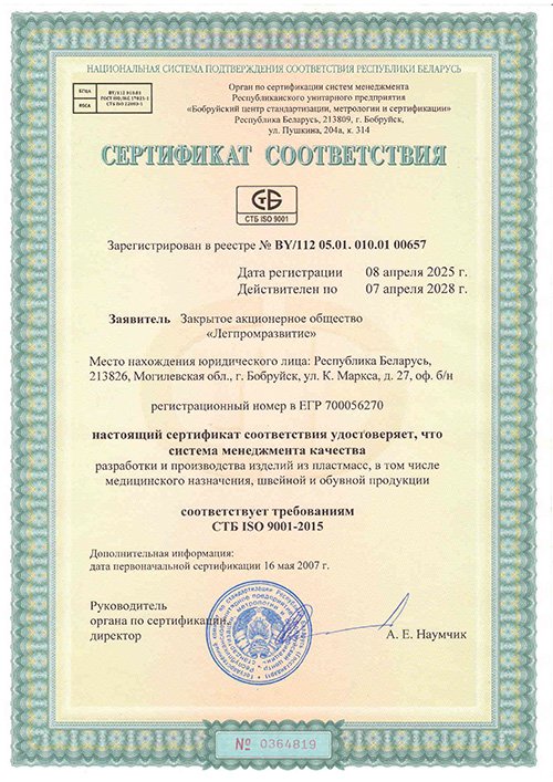 - Качество: соответствие стандарту СТБ ISO 9001-2015, подтверждённое сертификацией.